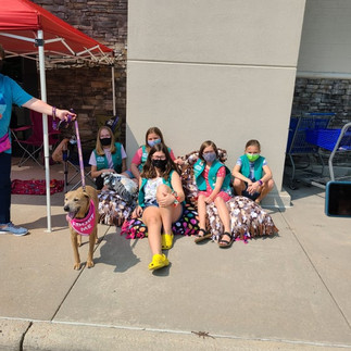 A big THANK YOU to Girl Scout Troop 4620, for coming out to our recent dog adoption event and visiting with our available dogs!! The rescue dogs are LOVING their new comfy beds that you made for them ! What a special treat!! The hand made Thank You cards you all made are beautiful!! Thank you for thinking of us here at Paws for Life NC and giving our foster dogs lots of love and kisses!